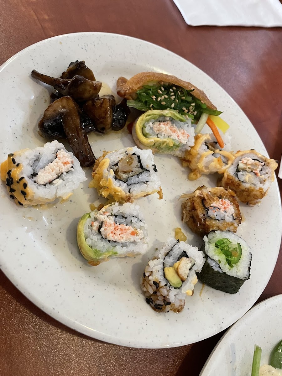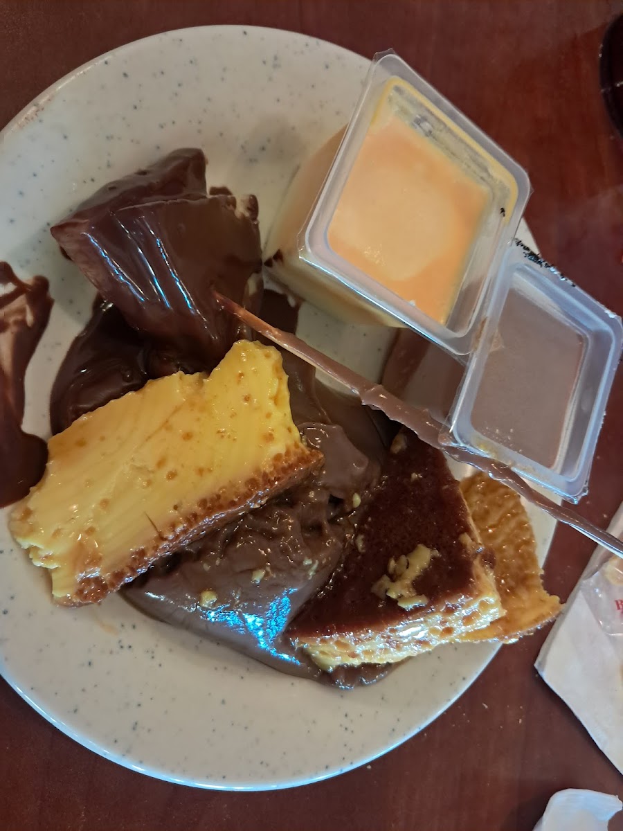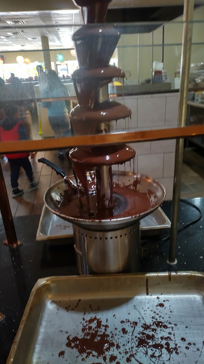 In addition to savory dishes, the menu includes a range of desserts and specialty items such as ice cream, gelato, flan, chocolate fountain selections, and seasonal fresh fruits. The presence of a sushi buffet, Mongolian BBQ, and udon noodles indicates a blend of Asian cuisine offerings that cater to varied tastes within the buffet format.